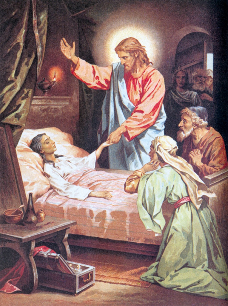54Он же, выслав всех вон и взяв ее за руку, возгласил: девица! встань.